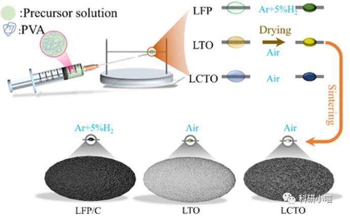 與傳統的毫厘米級電極相比,微電極具有反應面積小、靈敏度高、傳質速率快、極化電流小等特點。然而,目前的微電極制備工藝非常復雜和昂貴。在此,作者提出了一種簡便、通用的制備單顆粒微電極的方法。在前驅體溶液中,分別引入聚乙烯醇和氨作為聚合物粘合劑和成孔劑。通過噴淋-烘干-燒結工藝成功制備了Li4Ti5O12(LTO)、LiCrTiO4(LCTO)和LiFePO4/C(LFP/C)電池體系的單顆粒微電極,并表現出良好的電化學性能。其制備的單顆粒微電極可用于研究鋰離子電池的電化學振蕩,并可組裝成全電池的微電池,為下一代微尺度電源的設計表征提供了更加簡易的方法。