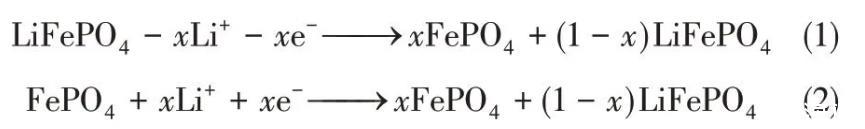 LiFePO4在實現(xiàn)Li+脫出與嵌入過程中的反應(yīng)過程分別如式(1)和式(2)所示。