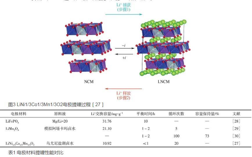 基于已有主要研究,對于上述三種電極材料的提鋰性能對比如表1所示。