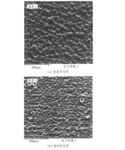 圖1是Ni-Mo合金電極和Ni電極的陰極極化曲線和Tafel曲線。從圖中可以看到,不論是直流還是脈沖電沉積,Ni-Mo合金電極的析氫性能都遠遠優于Ni電極,而脈沖電沉積得到的Ni-Mo合金電極又優于直流電沉積。由Tafel曲線得到的25℃下各電極在30%(wt)K0H溶液中的析氫動力學參數見表2。