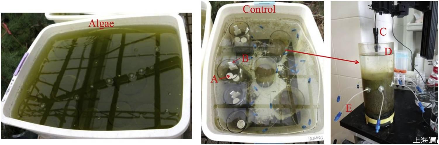 本論文的研究人員主要利用吸附式取樣器(Rhizon)對有害藻華(HAB)在發育的不同階段期20mm表層沉積物中可溶性活性磷(SRP)和可溶性鐵(II)濃度在3-h時間間隔內的變化進行了相關微觀實驗研究,了解有害藻華生長過程中沉積物中P受激釋放的過程和相關機制。